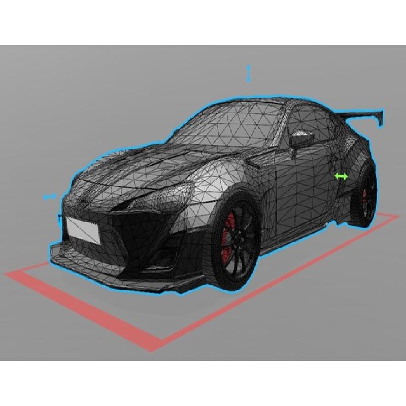 Body prints in three pieces and needs to be glued together. Needs supports for mirrors, wheel wells, and tow hook. Already oriented, current scaling is about 24cm long and 11cm wide.