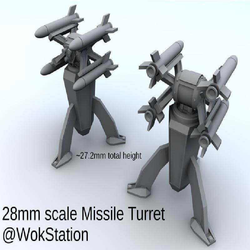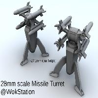 Missile turret at 28mm scale, can be used as a unit, scenery or just printed to look cool. When printed at 100%, it will come out a fraction over 27mm, making it almost as tall as a person at 28mm scale.
