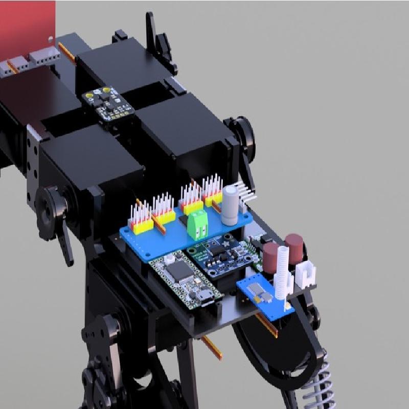 To assemble the cat you also need 8 servo motors, 4 RC car springs, 3x8x3 mm ball bearings and some nut and bolts.