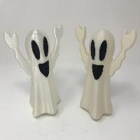But if you printed the single extrusion version, well there is some assembly required if you wish to add the eyes and mouth. Following the photographs, I glued the right eye, left eye then mouth (in that order) to the ghost using thick cyanoacrylate glue (the thick glue gives some, but not much, set up time to allow final manipulation of the parts in the ghost). While installing the eyes I used my small finger, inserted through the mouth, for support. When installing the mouth, I used my index finger, inserted through the base, for support.