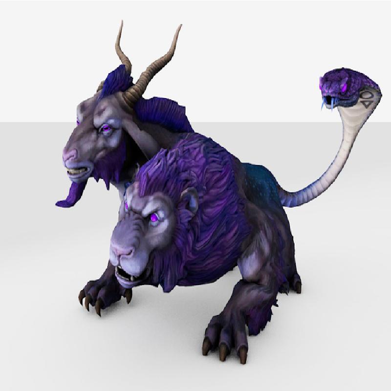Chimera model exported from game SMITE. I used it in my D&D games ( I scaled it to 70% ). Print a base and you're good to go. File should work fine.