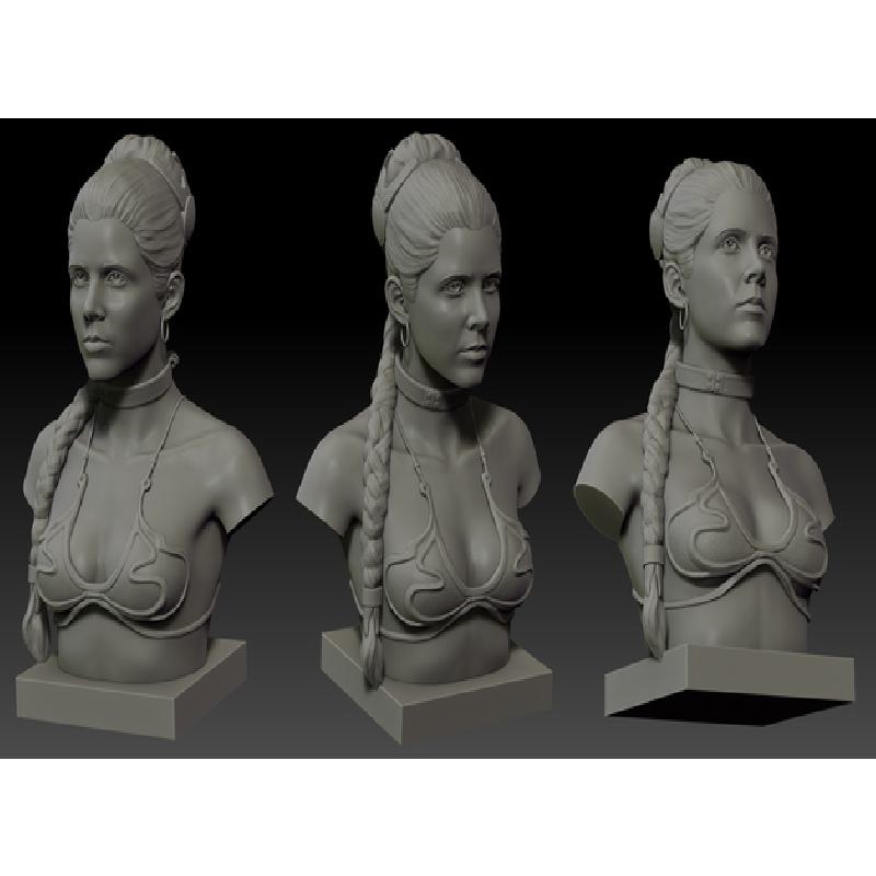 Leia from ROTJ. She should be the same scale as the other SW sculpts, but she's taller in order to keep the bra intact. I'd like to make a Boushh version in the future, that one will probably match the others in size. This sculpt is only good for ROTJ variants, maybe ESB. ANH Leia has a rounder face so I'd have to make a lot of tweaks to make that work.