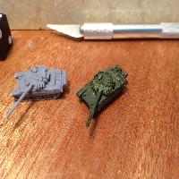 modeled in blender 2.79b using m/bergman's model as a reference. His model's hull didn't slice properly at the smaller scale of 1/285, so I redid the entire hull ( treads and wheels wouldn't slice right ). His turrets were good mostly; I removed the MG and made the commander's hatch a solid piece with the turret, but the rest of the turret is all his work.