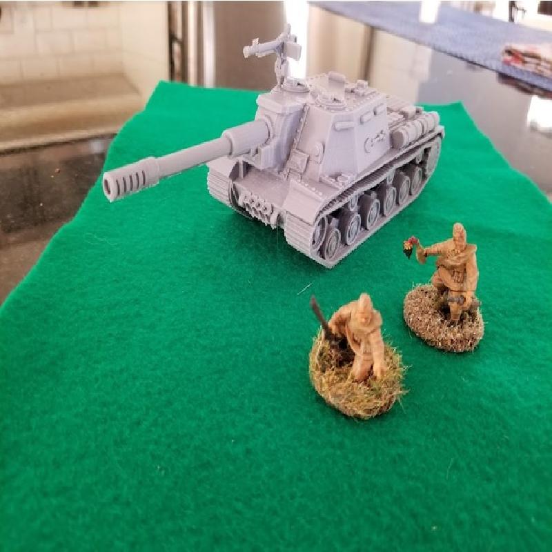This is a 28mm scale model of the Soviet ISU-152 Self Propelled Gun. It is an extensive rework of Bergman's 1/200th scale ISU-152 and Tiger Ace's tracks from his KV-1, from which the ISU’s hull was derived.