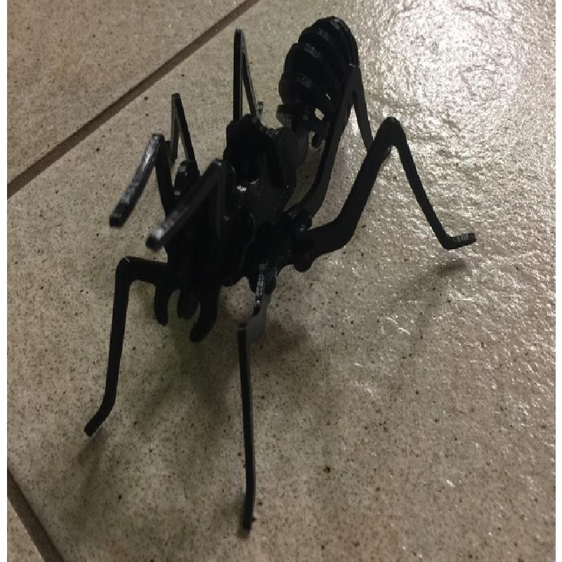 Simply copied the SVG file for a laser cutter from this page http://wiki.fablab-nuernberg.de/w/Ameise and converted it for a 3d print job. Details like part numbers were added and merged into the pieces in Tinkercad and exported. If you want to change something you can copy my Tinkercad project and edit it for your needs.