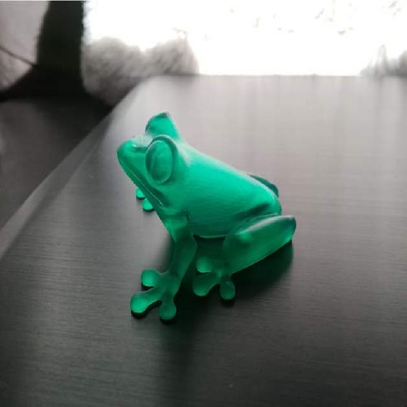 A tree frog optimized for SLA/DLP printers using resin. The model is hollow with 2 drainage holes. No supports required.