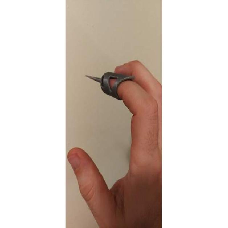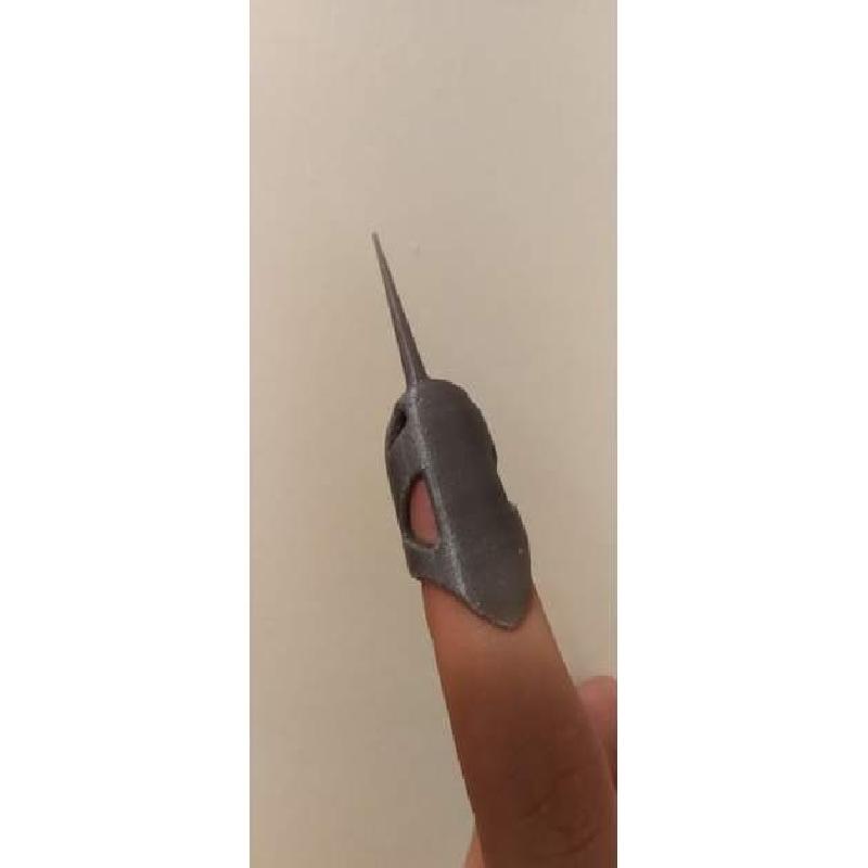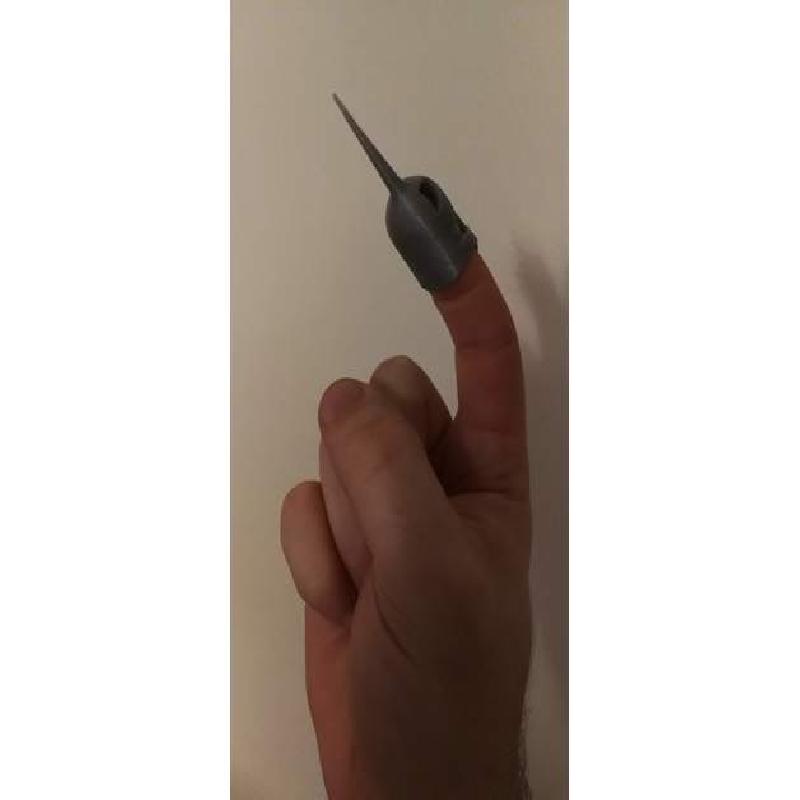 Sized to fit medium-sized hands; scale as your fingertip requires. Print it pointy-side up, with supports. (I had to use a raft.) Don't poke your eye out.
