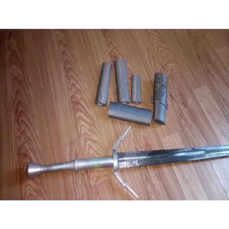 This is an addition to The Witcher's Silver Swordhttps://www.thingiverse.com/thing:2387760 . The upper and lower parts are printed with a layer of 0.1 mm. The remaining parts are printed with a layer of 0.3 mm. After gluing all the parts, the upper and lower parts are painted under the metal. The sheath is wrapped in artificial leather.