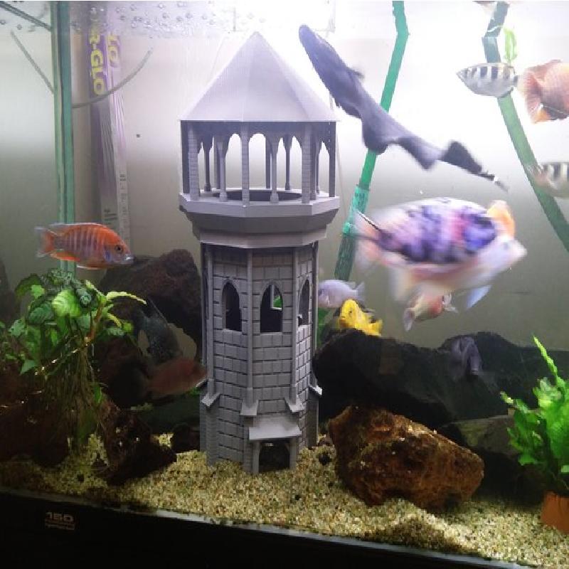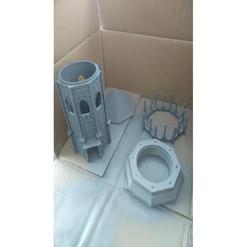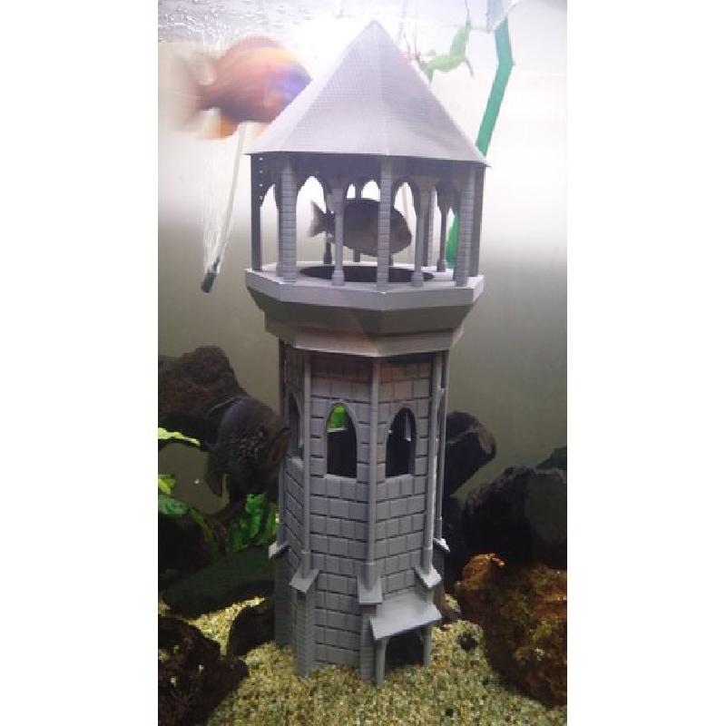 This is an age of empires inspired guard tower (based on the keep actually, but thats not as catchy a name) designed originally for use in an aquarium hence the large open windows and doors. The design is split into four sections for easy printing requiring very few supports and the sections all have locating pins so they snap together really nicely afterwards.