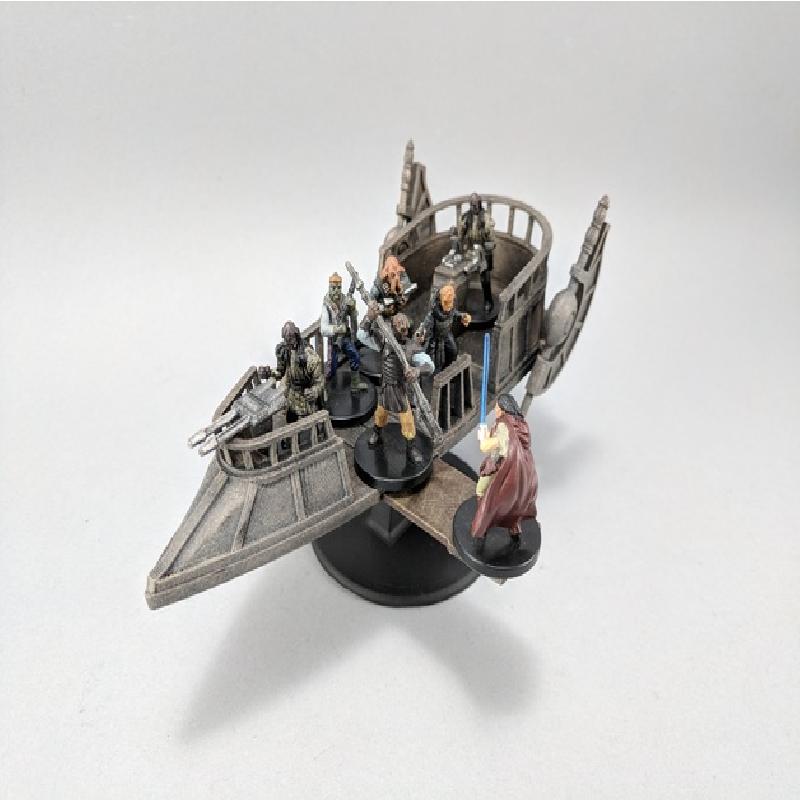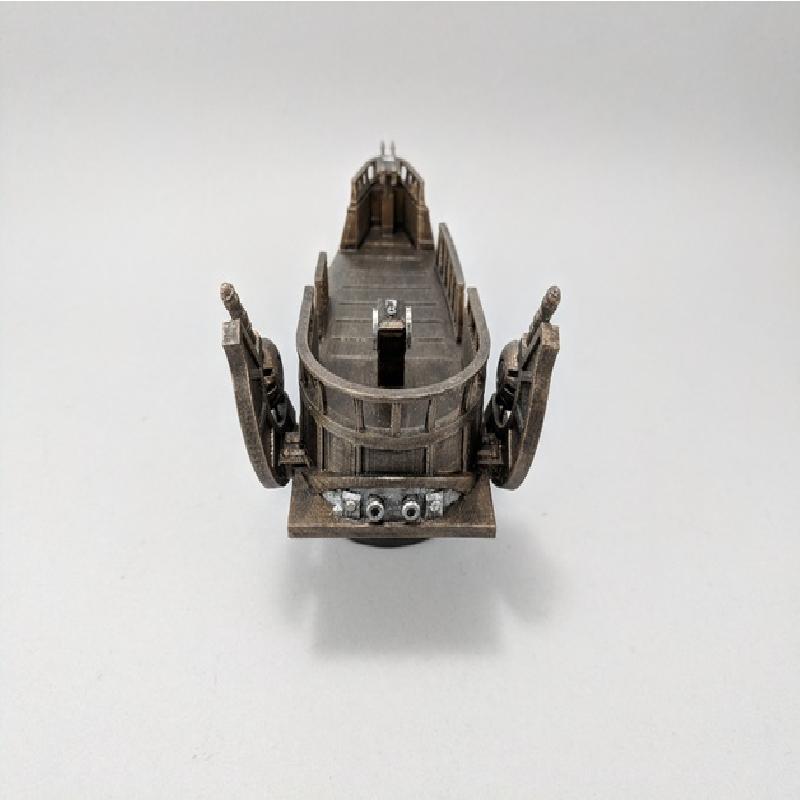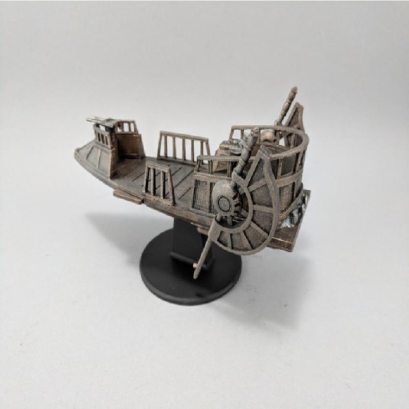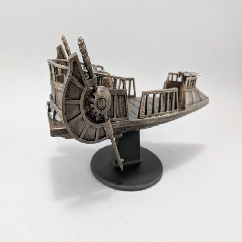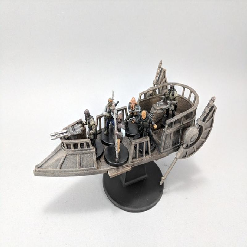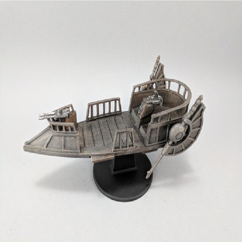 Here is a Pirate Skiff for your tabletop Sci-fi games. It has a retractable docking plank. You will need to print two Wing Sets and mirror one of the sets in your slicer.