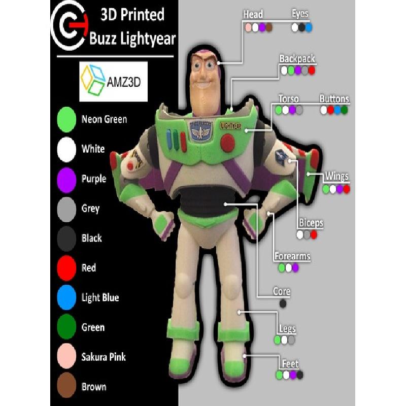 The infographic tells you what filaments I used for each section. And the file names indicate what should be printed together, and how it goes together. The pins will likely need some adjusting depending on the tolerances of your printer/filament/etc.