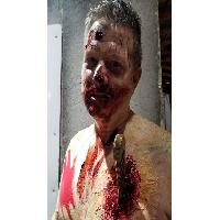 This is a stab wound I use for the zombie I play in 'The Old Spanish Trail' haunt. It's a remix of an excellent knife made by ramkfam. The base is simple so I use Prosade to adhere it and latex to create the wound. Any artists out there want to take it a step further and add wound texture to the base I'm all for it.