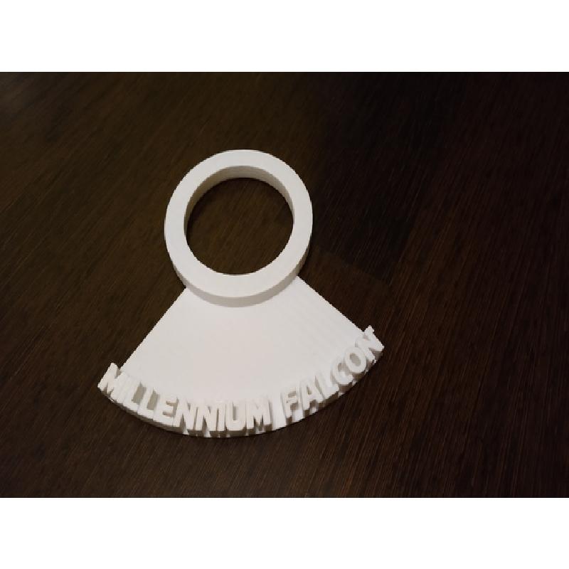 I created this support base for the Millennium Falcon. The model should simply be placed on top. The raised central ring prevents the lower central guns of the Falcon touching the ground.