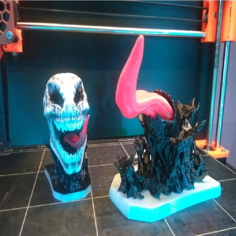 This is venom skull on symbiont base with tongue . Base and tongue is designet for faster print without support . Hole in base for tongue is biger .If you want , try scale him up a little . Happy printing..