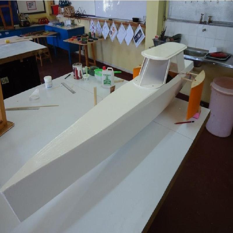 This is a model of the electric boat design I was working on. It is a one man boat, which I intended to use on a canal, lake or river. The hull is a displacement hull designed to cut though the water, causing minimal waves and drag.