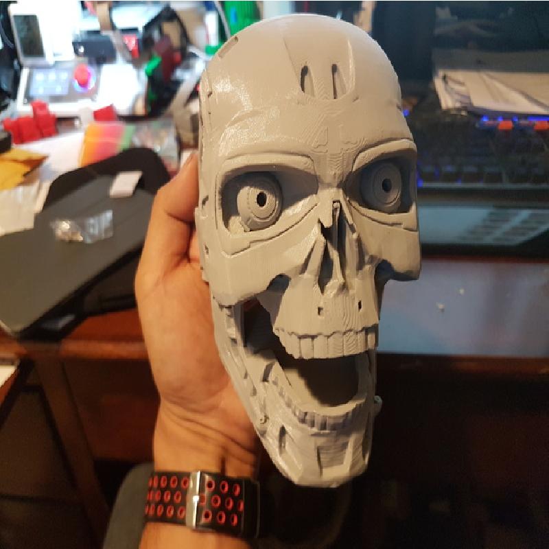 I like this "Thingi" (Thank you DEL_1979) but, after one failed print attempt, I thought it was too difficult for my inexpensive printer. So I cut the front half of the skull into two pieces (Headache), and removed some of the floating unattached parts of the model. This is sliced in such a way as to eliminate the need for supports for the large cavity inside. I still recommend supports for the other features. I added some locating studs, so it should just snap together. At least mine did.