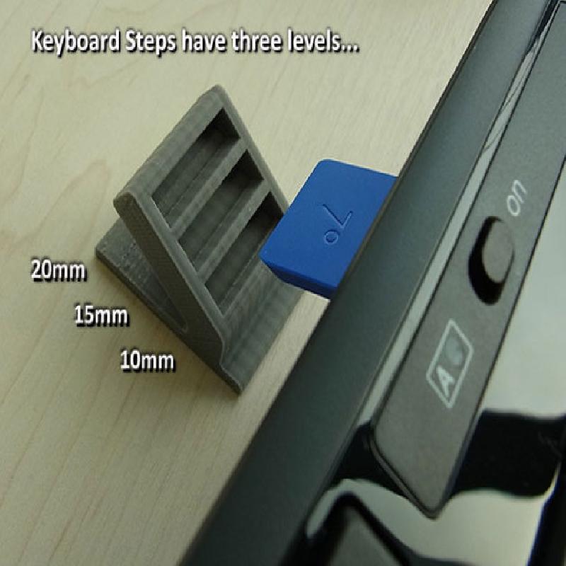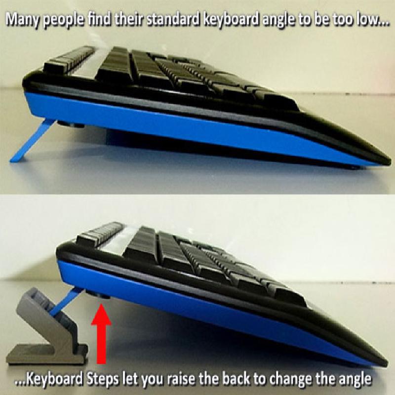 Keyboard Steps are a quick and easy print. As most keyboards have rubber pads to stop them sliding during use it is recommended to apply some adhesive backed rubber pads to the base of your Keyboard Steps for the same reason.
