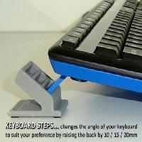Keyboard Steps are just that... a stair case for your keyboard that raises it by 10 / 15 / 20mm to suit you personal preference. They are super easy to use... just insert the rear legs of your keyboard into the keyboard step (height) of choice. They support the back of the keyboard to raise the angle /tilt it forward.