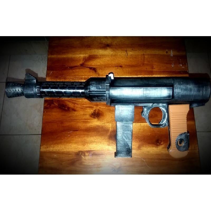 The RT-97C heavy blaster rifle was a model of heavy blaster that saw use during the Galactic Civil War. It was a versatile heavy rifle that was fitted with optics that allowed for use at long ranges. Imperial jumptroopers were known to utilize the weapon. This a modified shortened version of it more suitable for heavy fire power at close range. Thanks to Straeker form who I borrowed some parts to realize this submachine gun version of the 97-C heavy blaster.