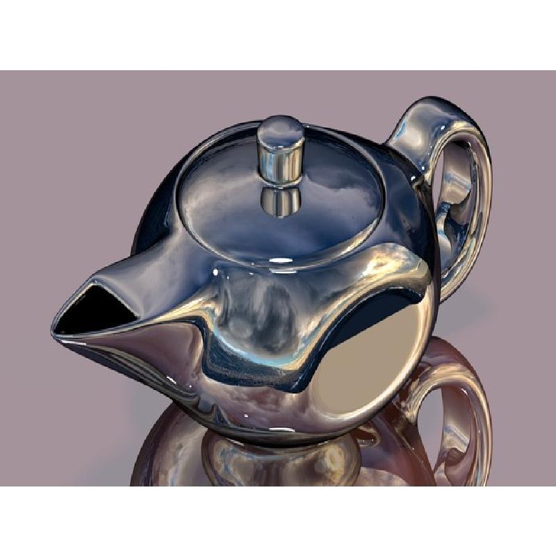 A teapot model, mesh designed in Blender as an object to receive reflections in renders.