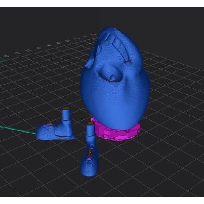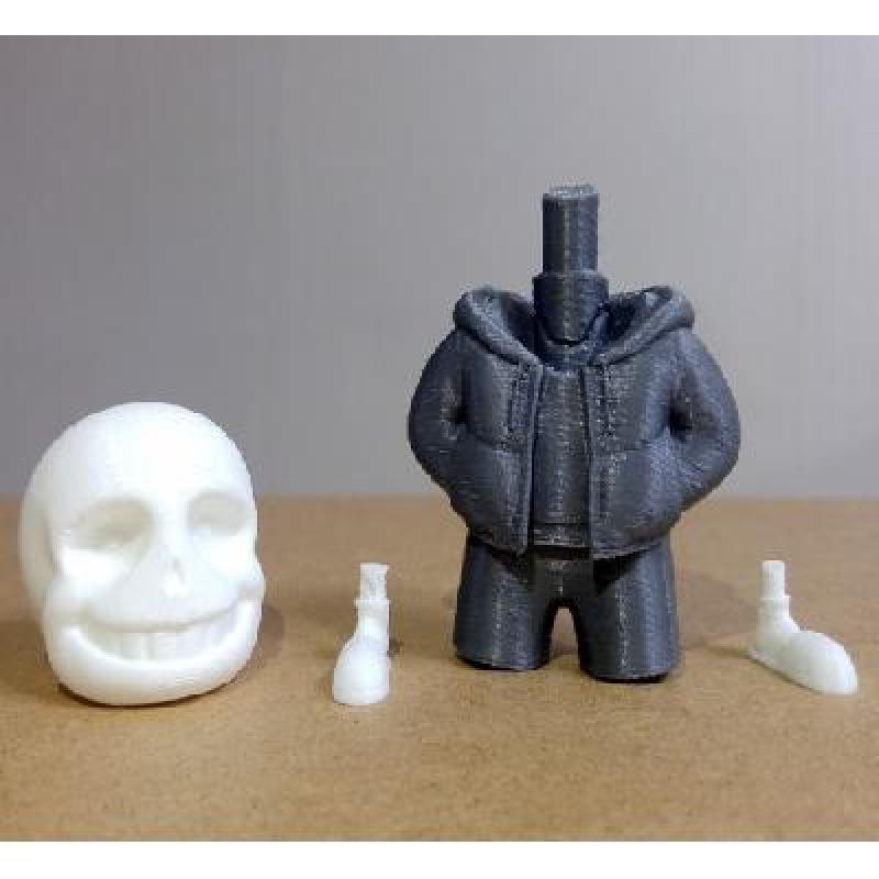 It's made up of four parts. Head, Body and two feet. Easy to assemble after you print it out. Ankles are weak, so may need to be glued. But If you want to have some rotation, don't use glue for neck. It's more funny. Thank you~