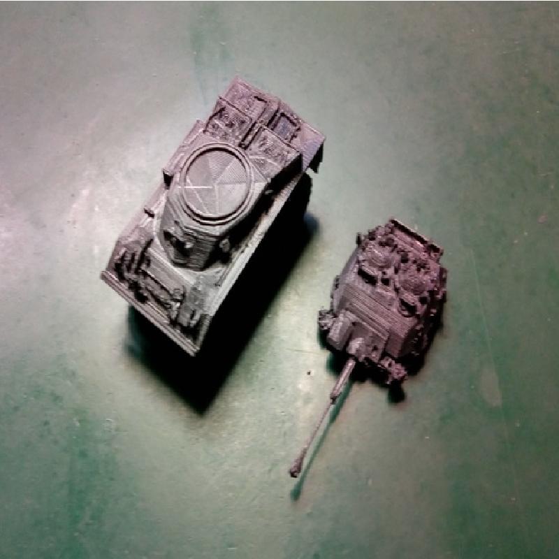Current model is split into body and turret, as it is relatively small. However, it would benefit from separation of wheels, which I will investigate as time permits. Items strengthened or removed where necessary.