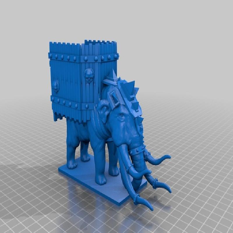 A war mammoth I made for Kings of War, using the great Miguel Zavala's mammoth model, a belt from desktophero3d.com and tinkercad. I have yet to print this file, and will likely update it a couple times after.