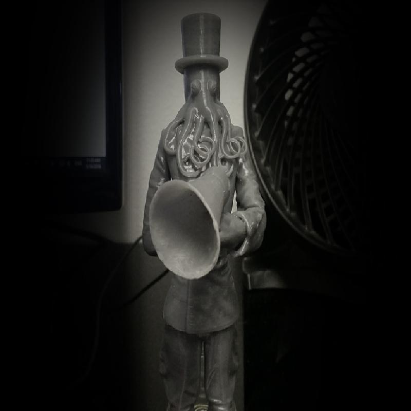 This was printed on an SLA machine with minimal supports. The print was hollowed, but settings may differ on filament based machines.