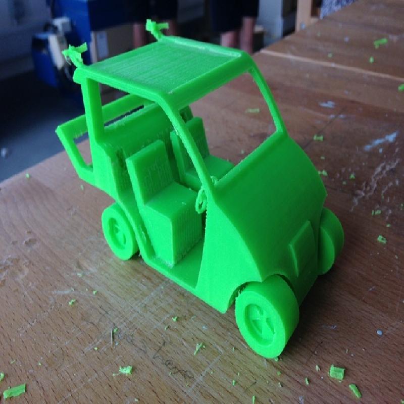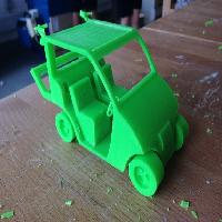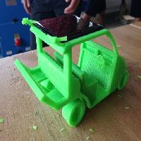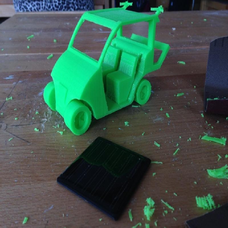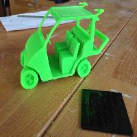 This is a model design of a golf buggy created for my school tech project, and I have intended it to be 'green' and 'sustainable' by adding in two small wind turbines at the back, and a space for solar panels at the top (not included). The wheels, although were design to turn, could not after printing due to excess material blocking the space. Everything created in one Solidworks document.