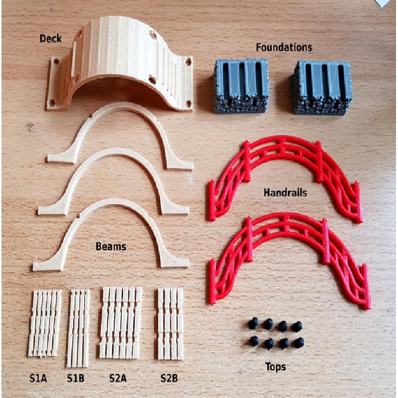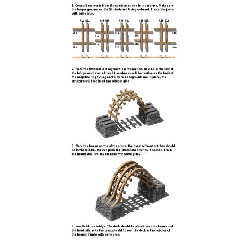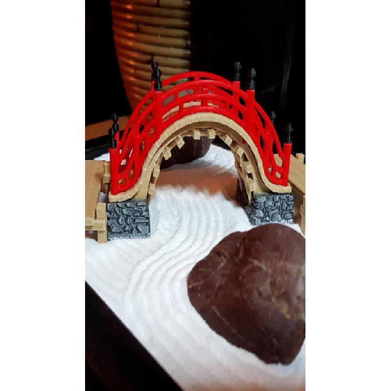 This is a Japanese inspired Moon bridge. Small scale to fit in a zen garden or other miniature scenery. The truss underneath adds some more details, but it will look great without it as well if you want to save yourself some work. Just omit all the 'struts' parts.