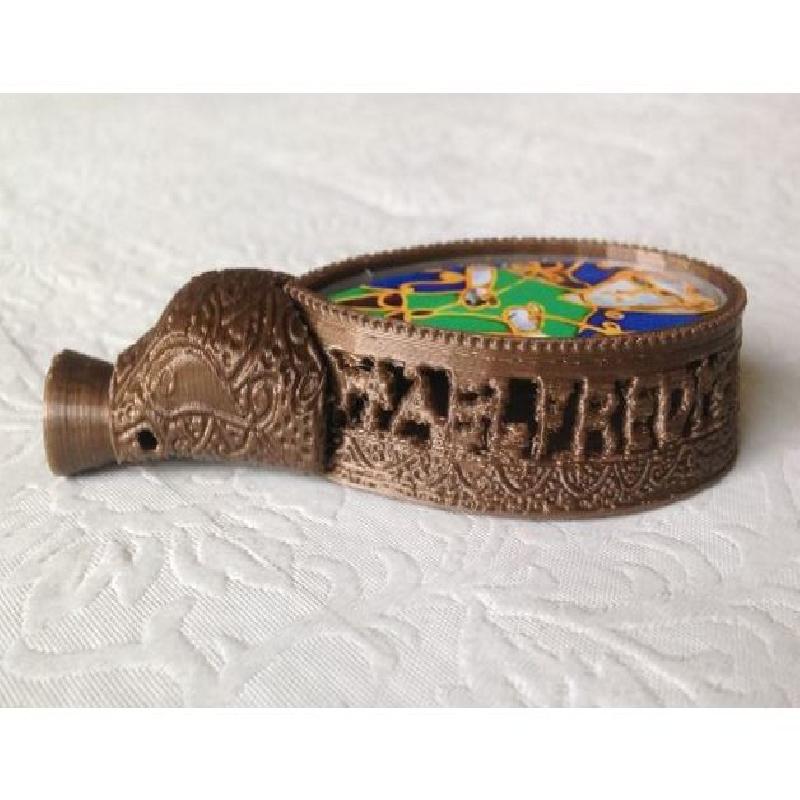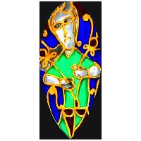 My attempt at a replica of the Alfred Jewel, based on various pictures gleaned from around the Web. It is thought to be an aestel, the handle for a book pointer.
