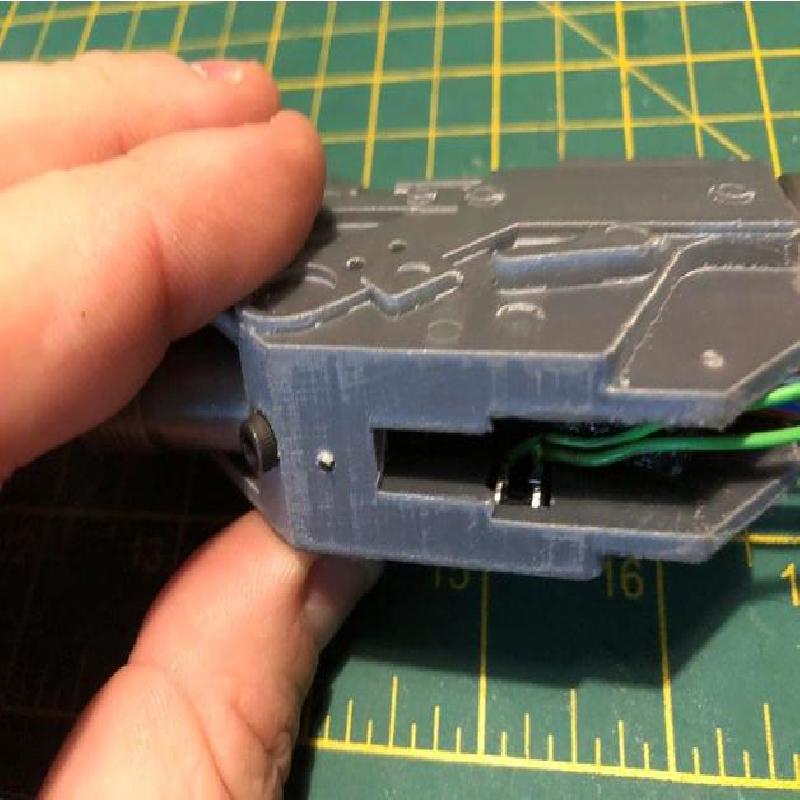 This is a rework of the original with voids cut into it to allow the fitting of all the electronic parts to turn the PPG into a 'functional' laser tag blaster.