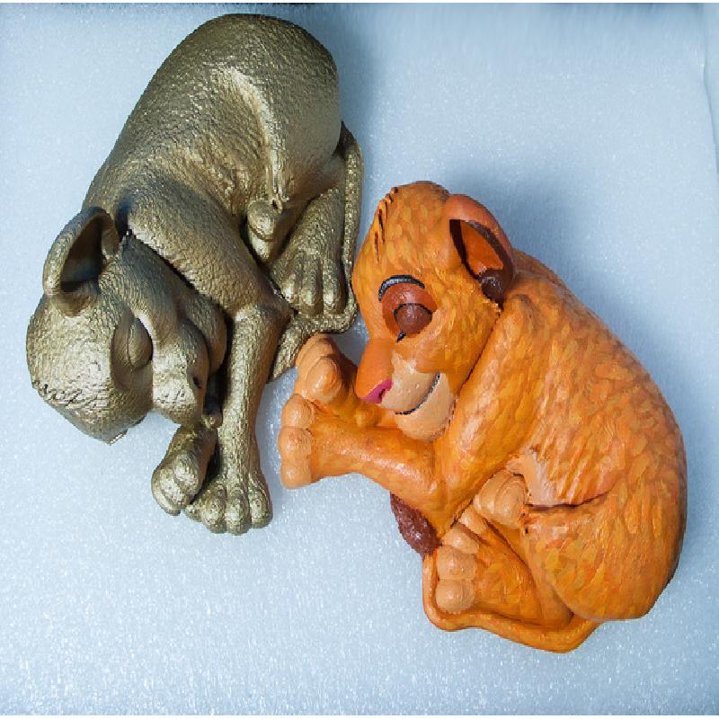 I airbrush painted mine and then brush painted the details as well as the fur. The golden one is the one with the fur in the model, I spray painted him golden with a spray can. (You may need a brush to get the paint in all the cavities)