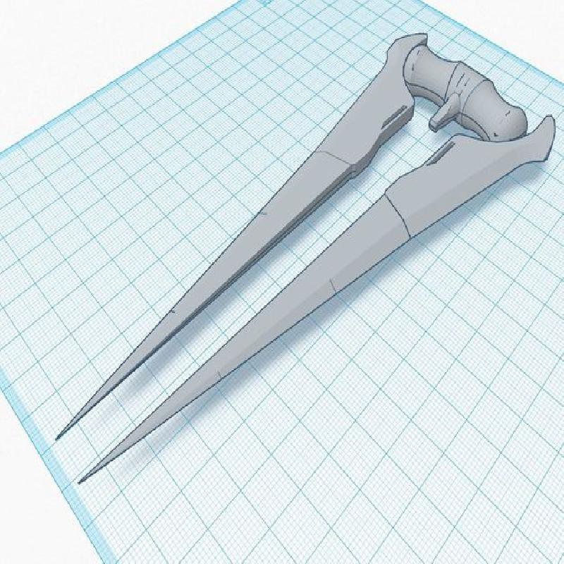 The 3 parts: the handle (print 2 times), the blade hilt (print 4 times), and the blade tip (print 4 times). Adjust the Infill to suit your needs: The Lower The % The Lighter It Is, but It Will Be Not as Strong (Use for a display or model to put on a shelf) The Higher The % The Heavier It Is, but It Will Be Stronger (Use for sword fighting, rough shipping, etc.)
