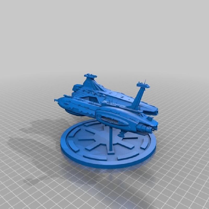 My recreation of the "all batteries" scene in Star Wars: Episode III in which a republic star destroyer broadsides Grievous' flagship, The Invisible Hand. I combined the pre-made ship models and used ty10y's republic logo as the base, and simply scaled, arranged, and fashioned stands.