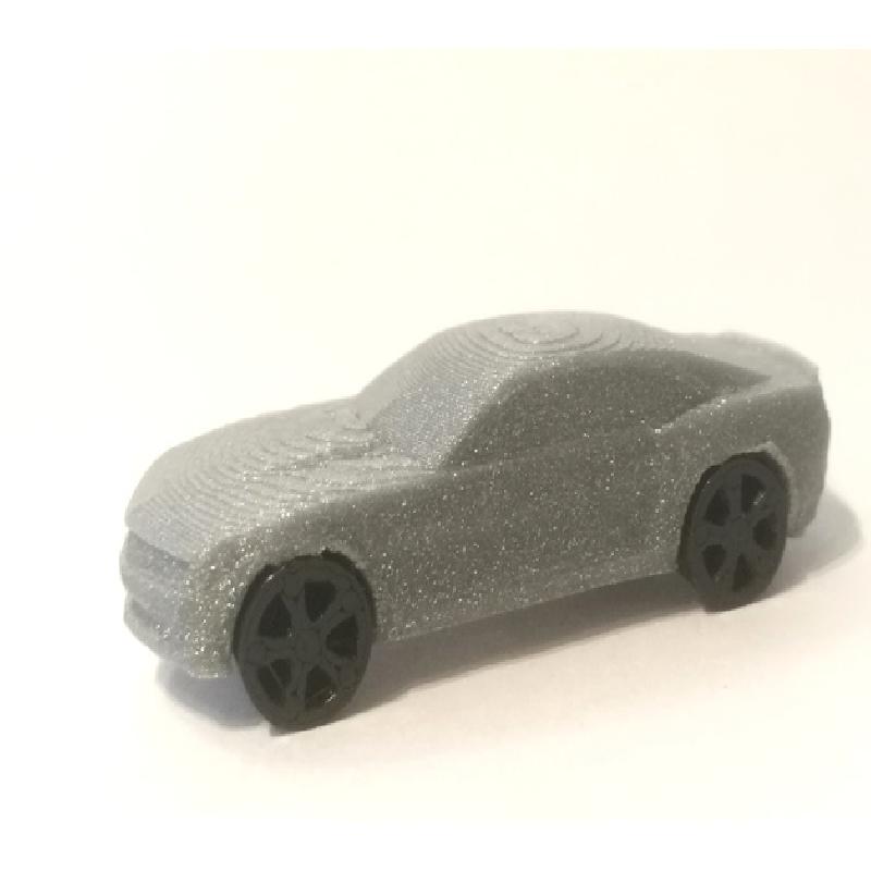 Print two set of wheels and snap them into the body. For more security, add a dot of superglue.