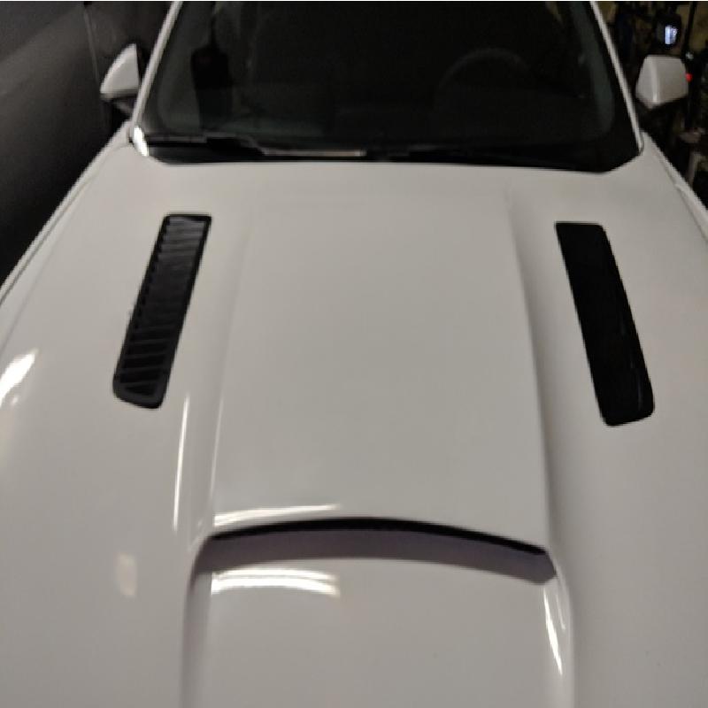 i will be putting an aluminum strip under the hood for reinforcement. This vent will allow more air to escape the engine bay than stock. It still needs more wet sanding and a few more coats of paint in the pics its just to give you an idea of what it will look like. feedback would be appreciated. I used some maker geeks raptor filament and annealed the parts in water to make them stronger.