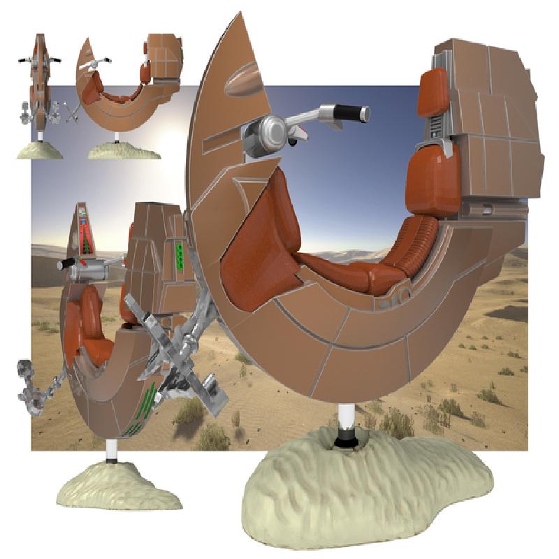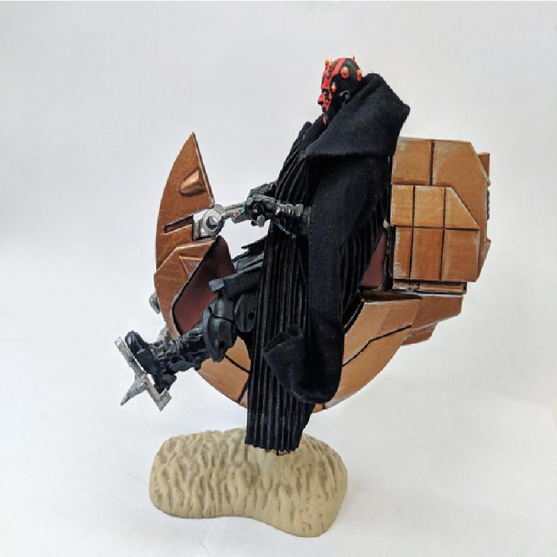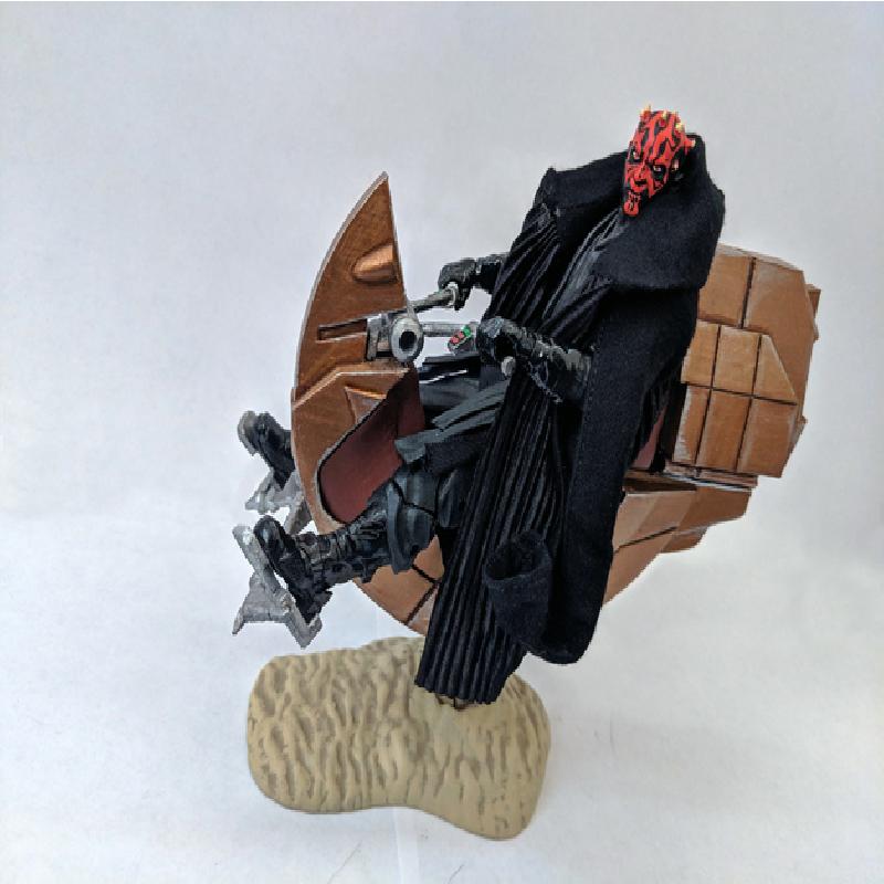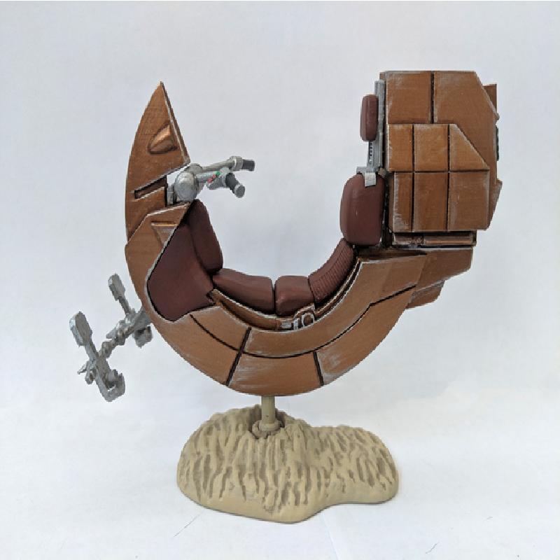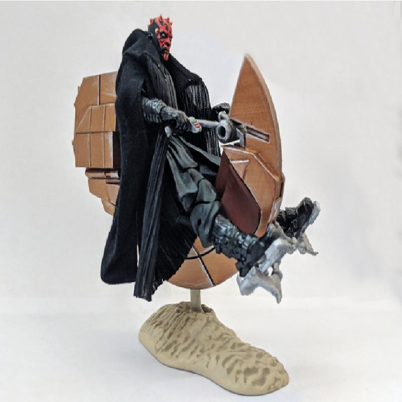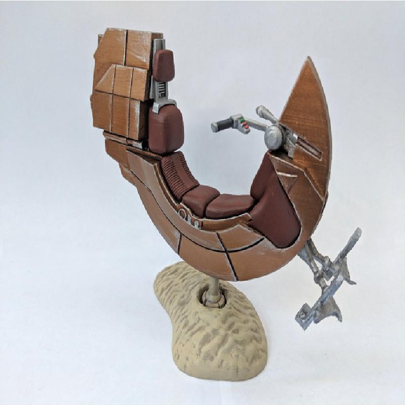 Darth Maul's speeder from Episode I for 1:12 scale figures! Like my lightsaber models, this is split into separate parts for easier painting and realistic part lines. Each part is in the orientation I printed them, though this is difficult print and pretty much every part requires support.
