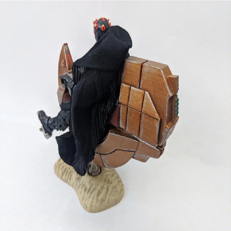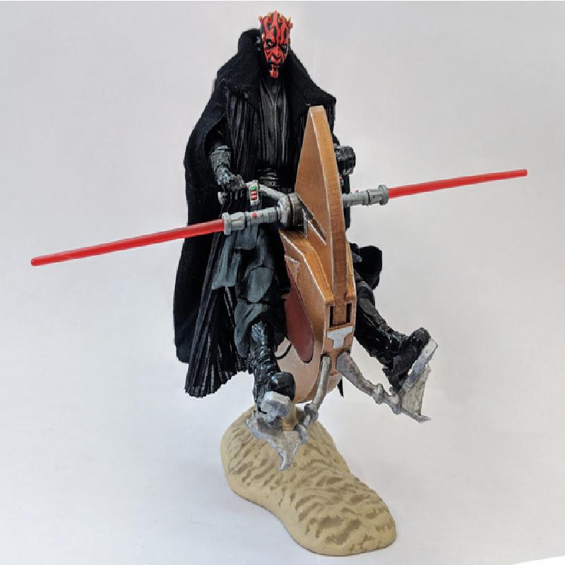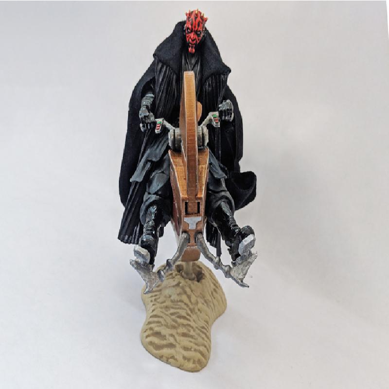 The engine has an extra wide opening to store Maul's macrobinoculars. An alternate set of handlebars is included as an homage to the video game Star Wars: Demolition! Insert Maul's lightsaber on either side of the Demolition handlebars to re-live all of magical moments from a sub-par Twisted Metal knock off.