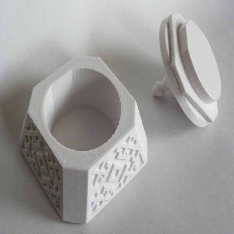 I originally designed this to be an ink jar, but I haven't tested how well it holds ink. If using it for that purpose I would recommend applying some kind of surface treatment or giving it a cold acetone vapor bath to get a glossy surface and make it less porous, since it is the nature of ink to want to spill everywhere. However, a treatment may also affect the fit of the lid.