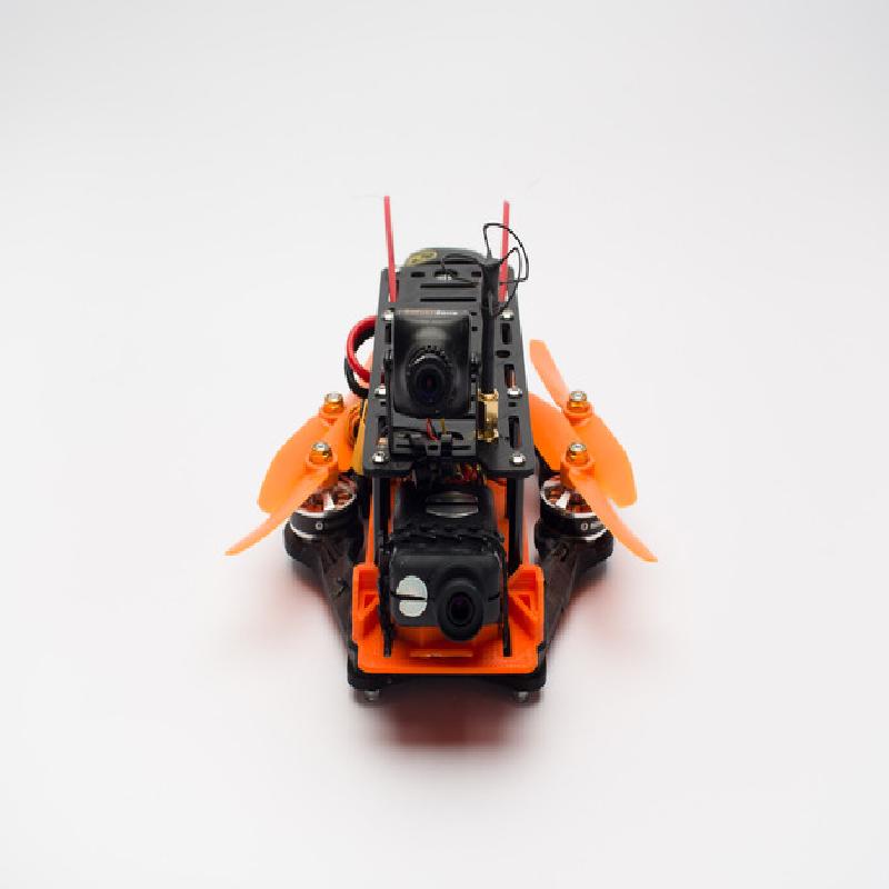 Integrated GoPro and Mobius mount. Reinforced structure reduces damage in a crash and elevates the GoPro for the use of a USB live-out FPV cable.