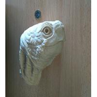 There are 2 holes at the bottom so you could also hang it on the wall. It however also works great standing. Making the head look out of something like a box should be nice as well.