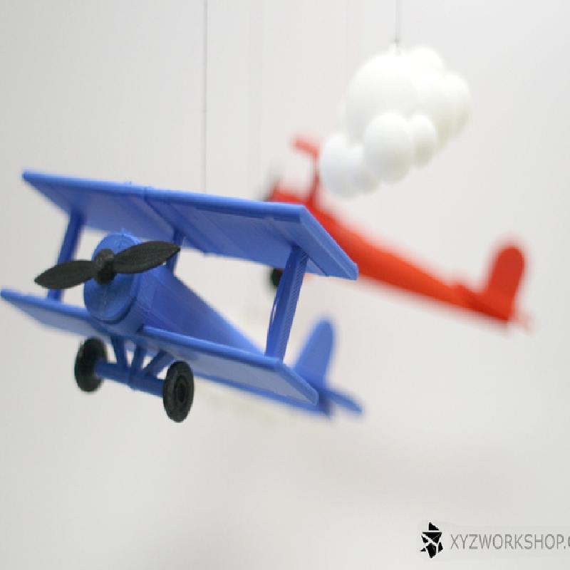This cute little 3d printed baby mobile is of a dog fight between the Red Barron and a Blue Prop Plane. Comes with fluffy looking 3D printed clouds.