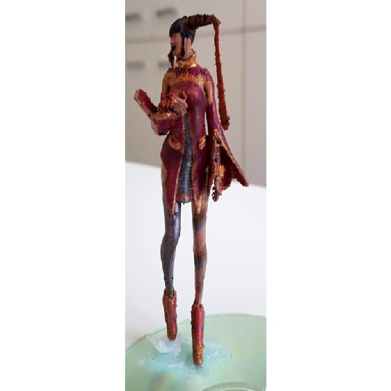 I printed her upside-down so I could get the things hanging off her hair to print without supports.