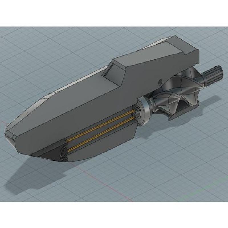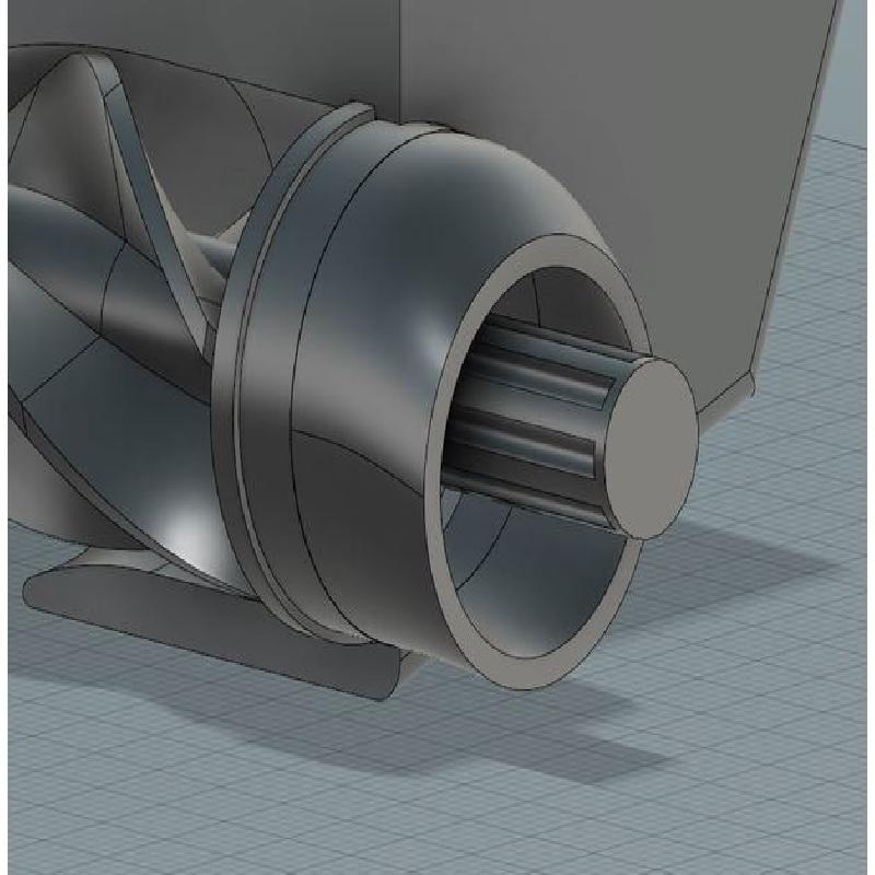 Das Jetboot soll ohne Infill gedruckt werden und besteht aus 2 hälften, einem Splint der den Gummi hält und durch eine der beiden M3x20 Schrauben mit passender Mutter gesichert ist, einem 625zz Kugellager und der Antriebsschraube. Jetzt hoffe ich mal, dass der Gummi genug power hat, um das ganze anzutreiben, aber mit ein bisschen Glück wird das was. Die Antriebsschraube ist schon fertig und der Rumpf läuft gerade.