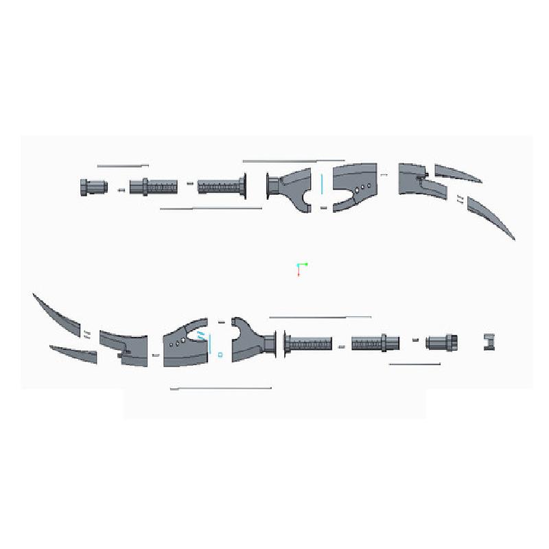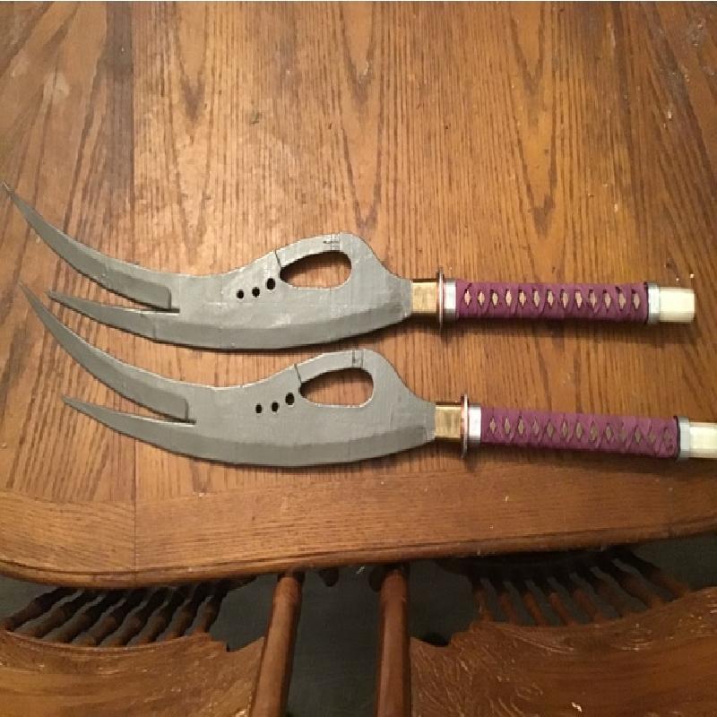 NOTE: If it's needed, I can also design a part to replace the central connection piece. That way NO metal would be used. You wouldn't be able to break it into two swords, but you'd be able to take it to a convention (the rules seem to differ per convention, so the metal bits in the end may be ok for some.)
