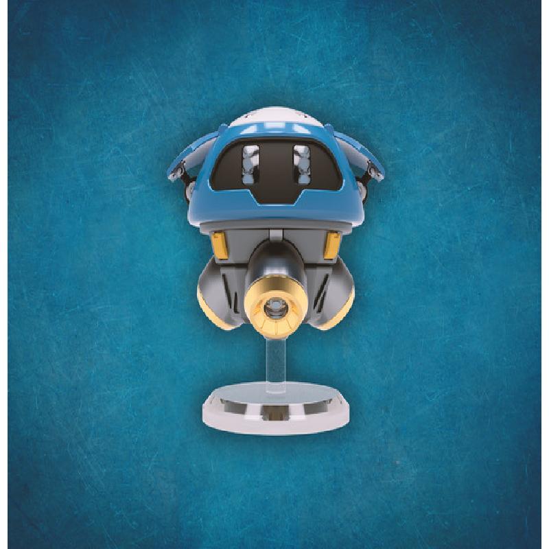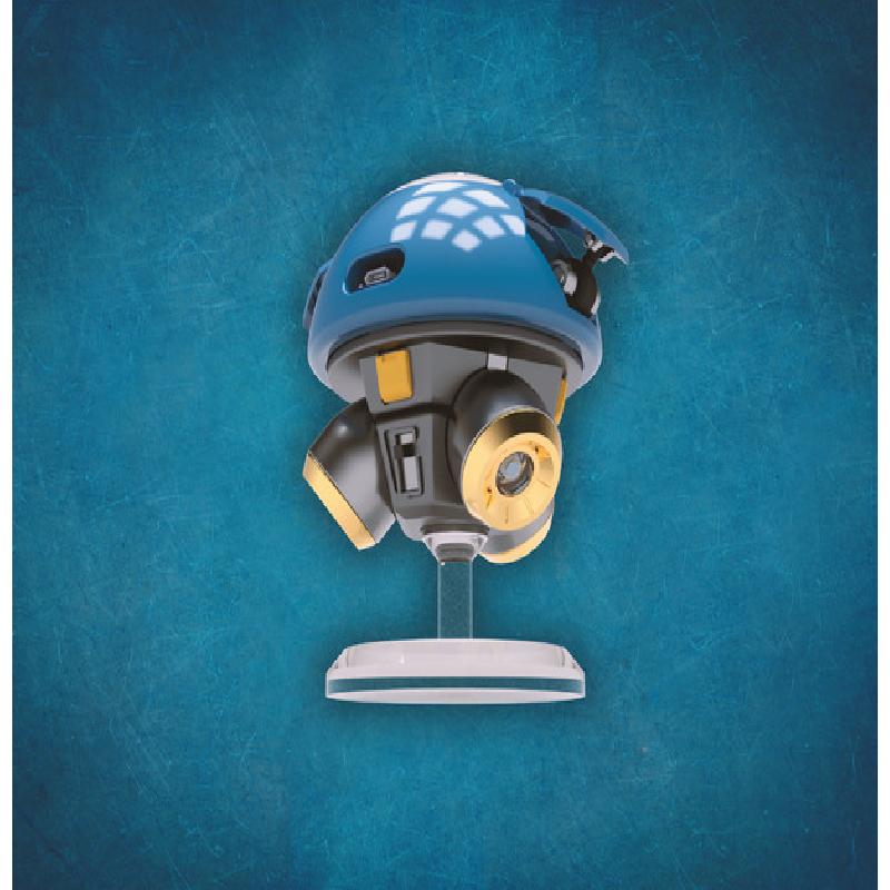 This is light-up desk toy of Mei's little robot Snowball from Overwatch. It's a static model designed for LED lighting. He comes in standing at just under 5" tall. It is powered by an internal 18650 battery that should provide roughly 8 hours of continuous runtime depending on the LEDs and resistors you choose, and can be charged with a USB Micro B connector, which should allow continuous operation while charging.