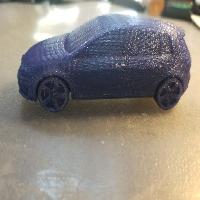 I remixed the GTI model to print on its side with the wheels and axles built in. Print as oriented, no supports, if slic3r doesn't import it correctly use Cura.