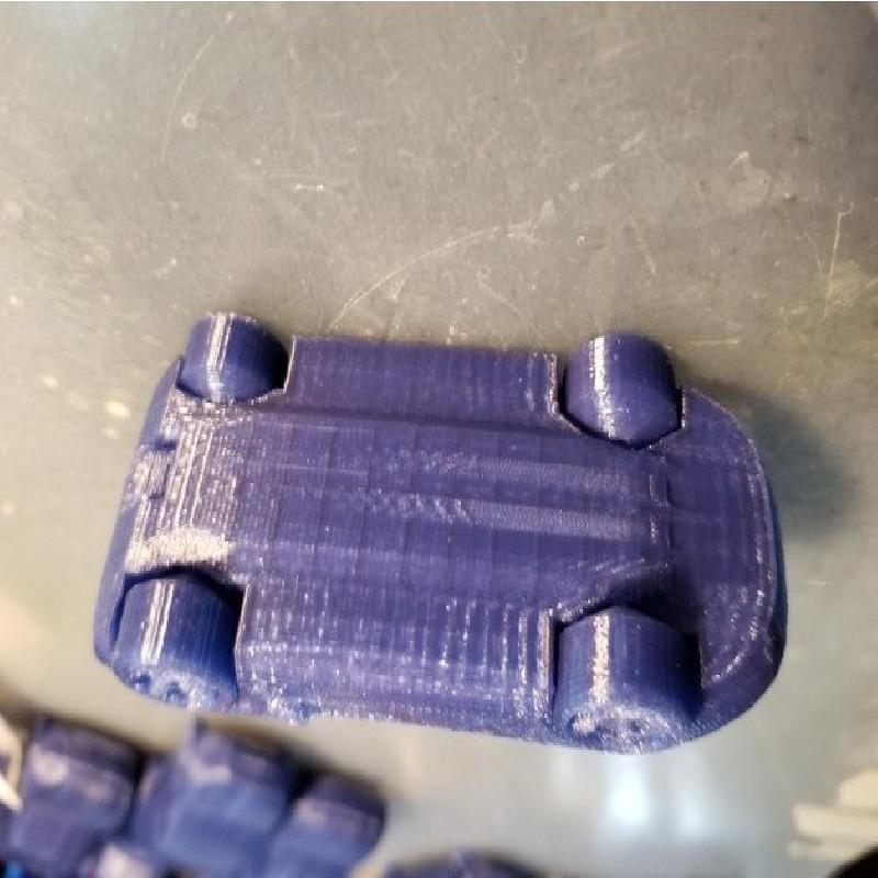 I remixed the Ford GT model to print on its side with the wheels and axles built in. Print as oriented, no supports, if slic3r doesn't import it correctly use Cura.