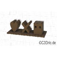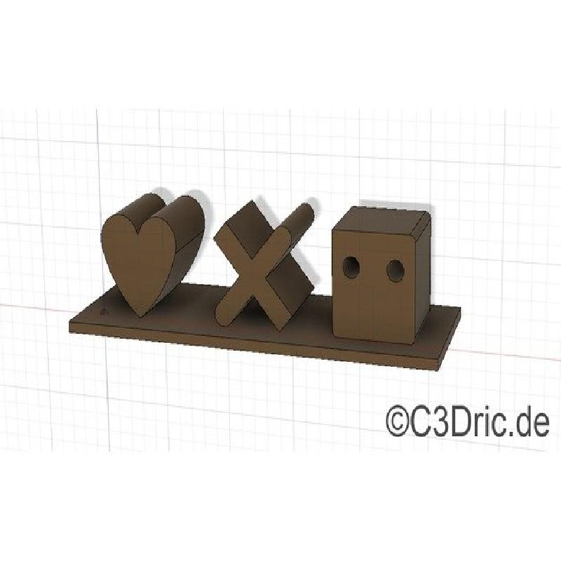 This is a 3D-orint with the three symbols known from the Netflix series "Love, Death & Robots".
